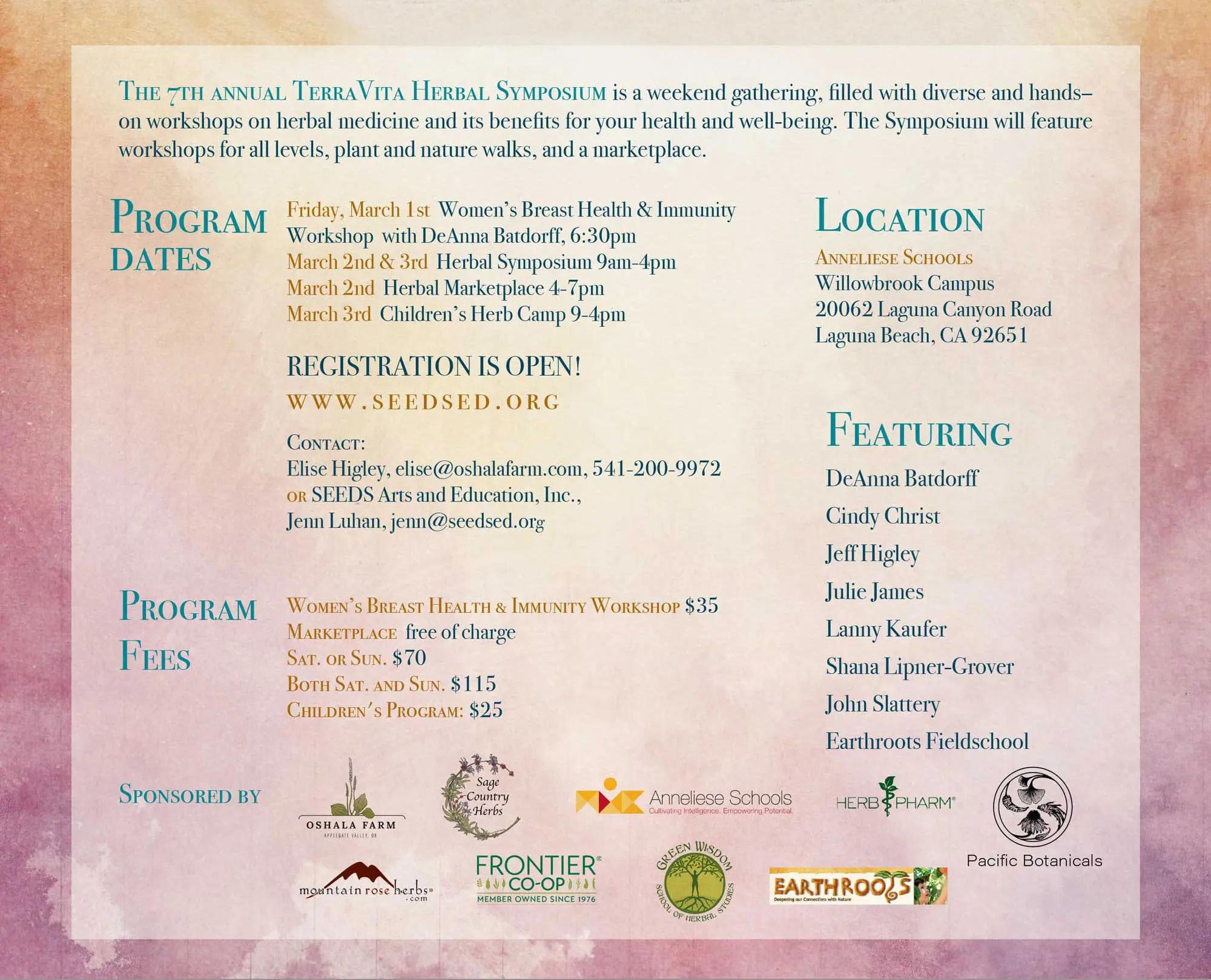 Jeff Higley will be teaching two workshops on growing medicinal herbs at the TerraVita Herbal Symposium in Laguna Beach, CA on March 2 & 3rd. Come visit the Oshala Farm booth at the Saturday Herbal Marketplace (open to the public).