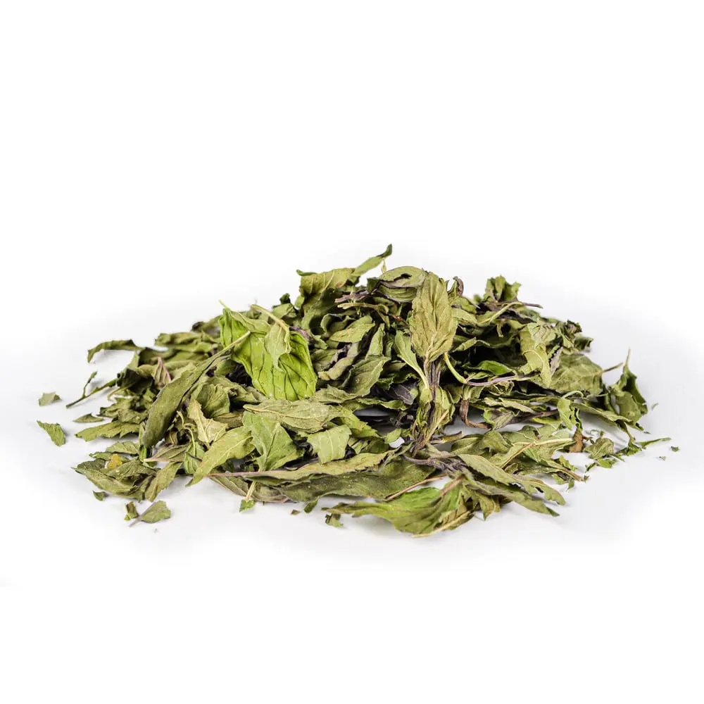 Peppermint Leaf, Mentha piperita ~ The most potent and cooling of the mints. Folk uses include reducing nausea even in small doses, restoration and invigoration from nervous exertion, and cooling the body temperature. It has been demonstrated that peppermint literally cools the body by reflexive action from contact with the stomach or skin by direct communication with the nervous system.